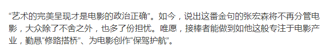 笔者获悉,张宏森无论在工作决策上,还是朋友圈中,都是一个有个性、有观点的“内行”。多年来,凭借勤恳的工作态度以及对电影市场的全局把控,其一度被誉为中国电影产业蓬勃发展的奠基人。