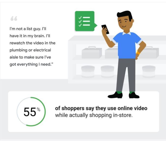 55%的消费者在店购物时会把视频内容作为参考(来源:thinkwithgoogle)