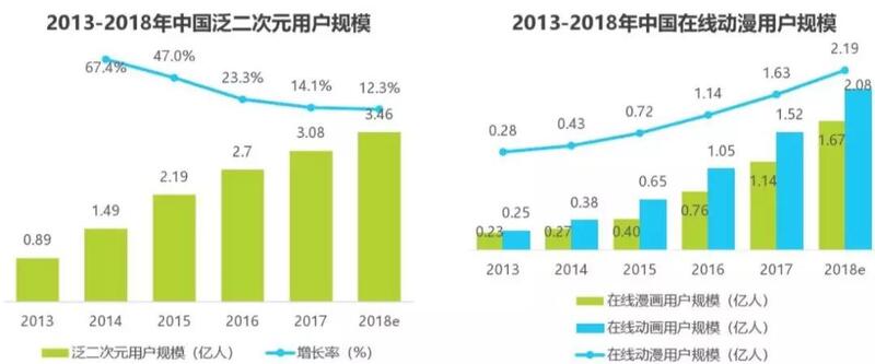 平台自然也不会放弃这一领域。据艾瑞咨询发布的《2018年中国动漫行业研究报告》显示,2013年—2018年,中国泛二次元用户数量持续增长,到2018年已经接近3.5亿;在线动漫、在线动画、在线漫画用户数量也持续走高。用户的迅速增加,意味着动漫产业拥有巨大的需求和市场空间。