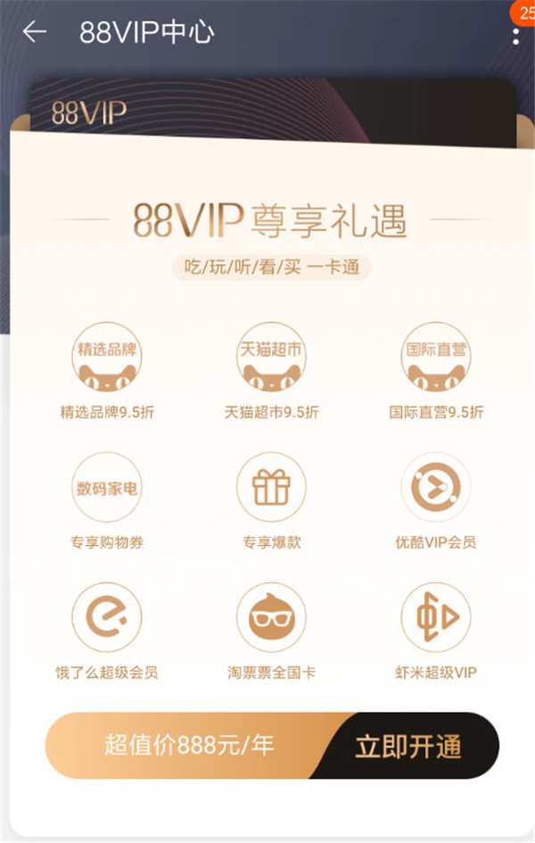 图片展示的是阿里系正在热推的“88VIP会员卡”。从消费者的角度看,这张卡是否划算并非本文的讨论重点。网上的评测文章很多,大家可以根据自己的情况进行选择。“88VIP会员卡”指向一个事实:阿里系正在转变流量获取方式和利润增长形式,而这种转变和Costco正在坚持的路径颇有异曲同工之感。