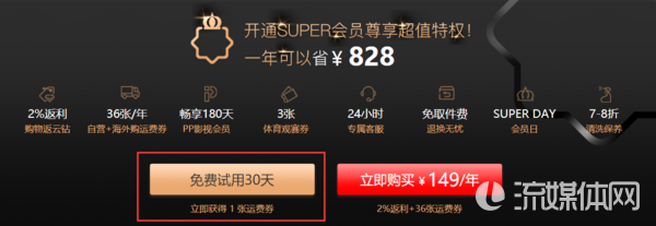 我们再看另一位全渠道布局的零售大佬——苏宁易购,他所发行的Super卡也是一样的套路。详见下图。