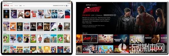 在大多数设备上,Netflix都采用行列二维导航的方式来呈现视频内容,用户可以采用水平或垂直滚动的方式来查看这些内容。