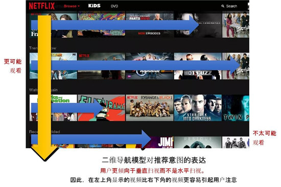 因此,Netflix宁可坚持采用看似简单的行列二维模型进行页面布局,以保证能够在简单的导航交互模型下为用户提供更为准确的、多样化的推荐结果,以提升内容的推荐有效性。