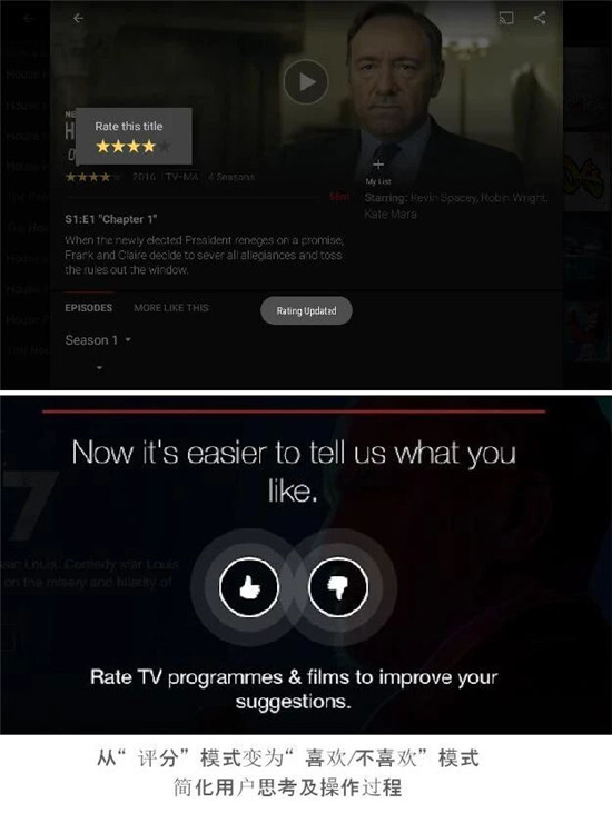 无论哪种结果都会造成内容推荐的不准确,因此Netflix之后将其改为最简单的“喜欢/不喜欢”并且取消了评论的功能。