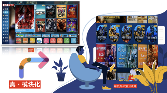 “真·模块化”,我们做出了模板让编辑可以快速使用这些模块做专题和相应内容。这些模块化的东西我们做出了一套体系,各个垂直类的产品,把模块做出来后是通用的。我们的首页有100多个专题,是不断更新的专题,编辑人数是一定的,这些编辑怎么做了电影、电视剧少儿的专题又可以做首页的专题?只需要各个板块拉。模块化上我们给运营提供了尽可能多的空间,每个模块的内容可以通过智能运营,选择同一分类下的用户更感兴趣或者看过的片子,模块的顺序是可以通过智能运营展现的,把模块化作为运营的基础积木,通过模块化设计,我们已经能够快速地进行能力性的返回。针对用户制定的模块,通过编辑的快速运营能够快速上线。