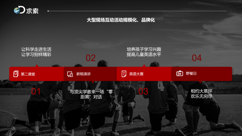求索不仅是一个频道,更是一种生活方式,这是我们的战略思考,我们提出线上线下一定要结合,内容通过线上推广、内容合作、版权合作、平台落地,线下通过用户活动来进行。