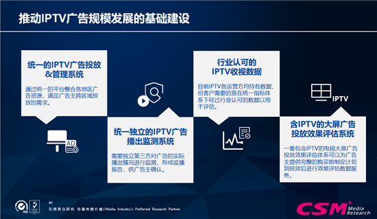 推动IPTV广告规模发展的基础建设有几项工作: