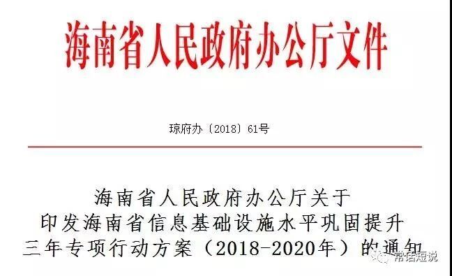 近日,海南省政府办公厅公布了一份《海南省信息基础设施水平巩固提升三年专项行动方案(2018-2020年)》。方案指出,海南将通过加快推进通信网络提速降费、加强4G网络强覆盖、提高700M频段利用效率等方面,加强海南通信网络提质增效。