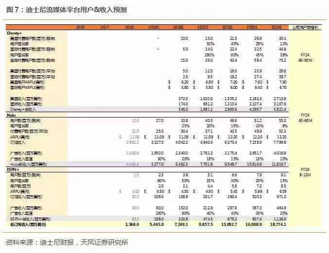 那么,万众瞩目的迪士尼流媒体首秀反响如何?据外媒报道,Disney+在上线之前已经积累了100万预售用户,在安装宽带 的美国家庭中订阅率约为10%,而Netflix的订阅率为25%-30%,官方宣布2024年其全球用户目标是6000-9000万,目前摩根斯坦利分析师认为到明年底迪士尼旗下所有流媒体(Disney+、ESPN+、Hulu)总用户数将超过5000万,2024年Disney+用户可能超过1.3亿。这还是在保守估计的情况下。爱奇艺最近发布的Q3财报显示其会员数字为1.058亿,而奈飞现在全球用户数为1.58亿。这意味着Disney+需要重新制造一个约等于奈飞体量的流媒体。