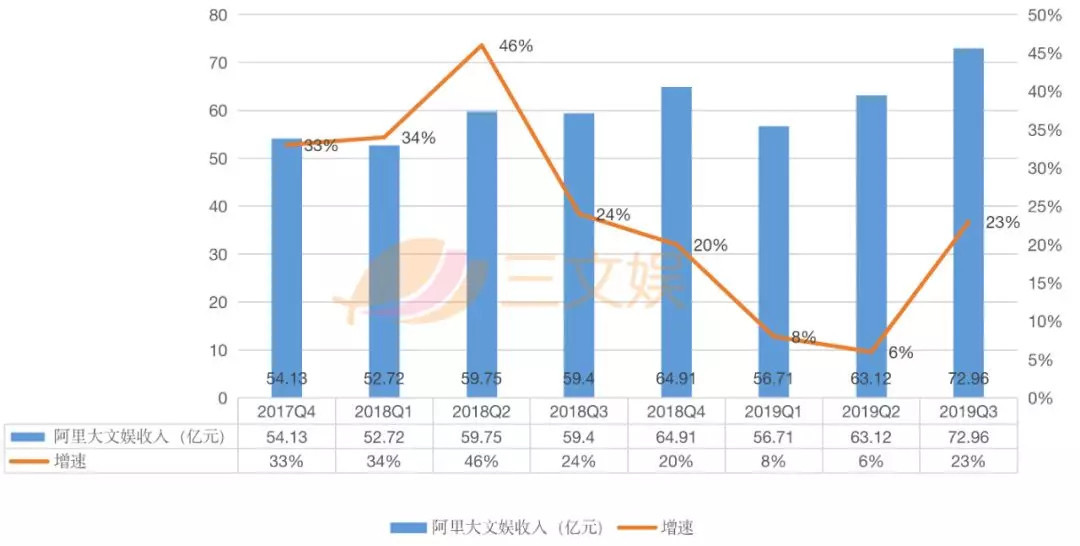 前三个季度,阿里大文娱的总收入都在稳步增长。