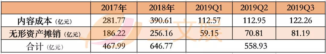 其中,仅第三季度的内容成本就有62亿元,占季度收入成本的75%以上。