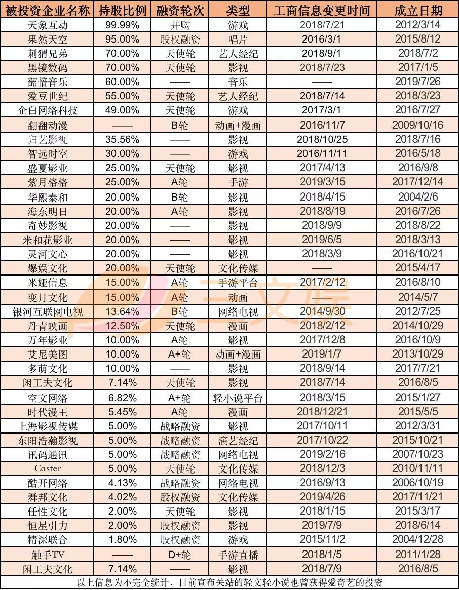 要扭亏为盈,还得依靠内容。2016-2018年,三年里爱奇艺每年上线的自制剧超过了20部。上文我们已经提到,接下来爱奇艺会继续加大在自制内容上的投入。而这里面的部分作品,就来自爱奇艺在文娱领域投资的公司。