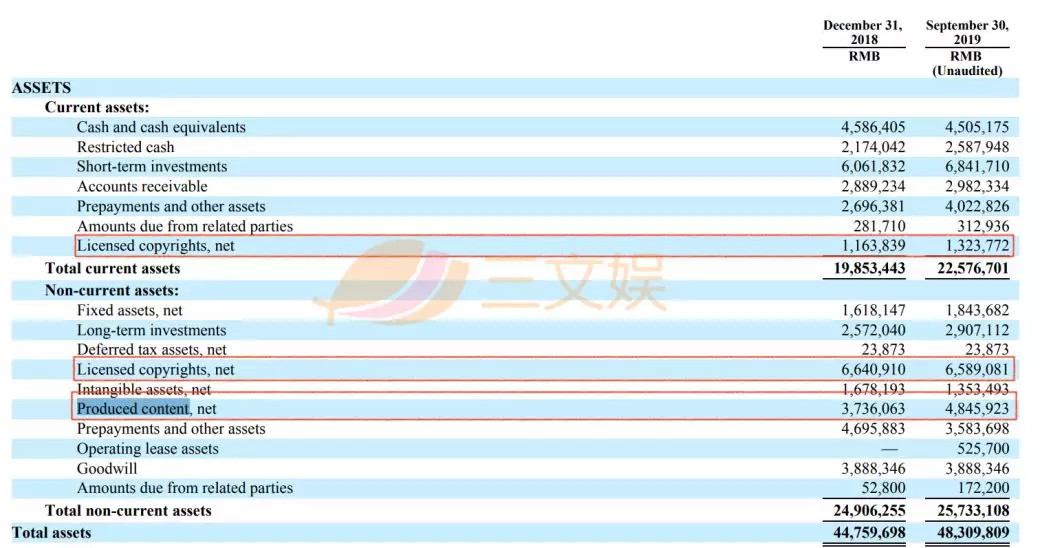 今年第三季度自制内容资产,增长到了48.46亿元。