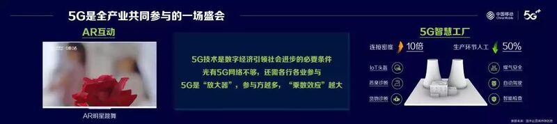 一方面,5G是全产业共同参与的一场盛会。“4G改变生活,5G改变社会”。5G是数字经济引领社会进步的必要条件,但光有5G网络不够,还需要各行各业的积极参与。5G是个放大器,参与方越多,“乘数效应”就越大。