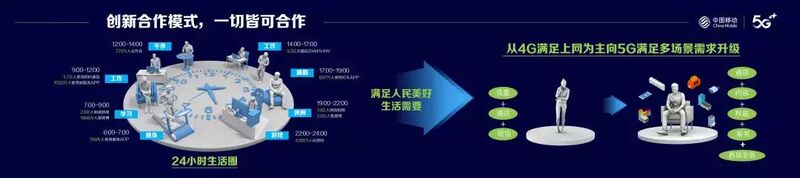 通过大数据分析,每天早晨7点到9点,有2亿用户看新闻;中午12点到14点,有770万人通过APP点外卖;晚上7点到10点,有2亿人购物、看视频。数据让我们更懂客户,随着5G的快速普及,9.4亿移动客户的需求会全面升级,我们面向客户推出的通信产品也要重新定义,从连接产品向“连接+生态”的组合产品升级。4G产品以满足用户上网需求为主,5G产品要满足客户通信、权益、内容、服务等多场景需求。比如现在的5G套餐包含了5大类权益,覆盖了300多个合作伙伴的产品。我们的一切产品皆可与生态伙伴合作,共同满足人民群众对美好数字生活的需要。