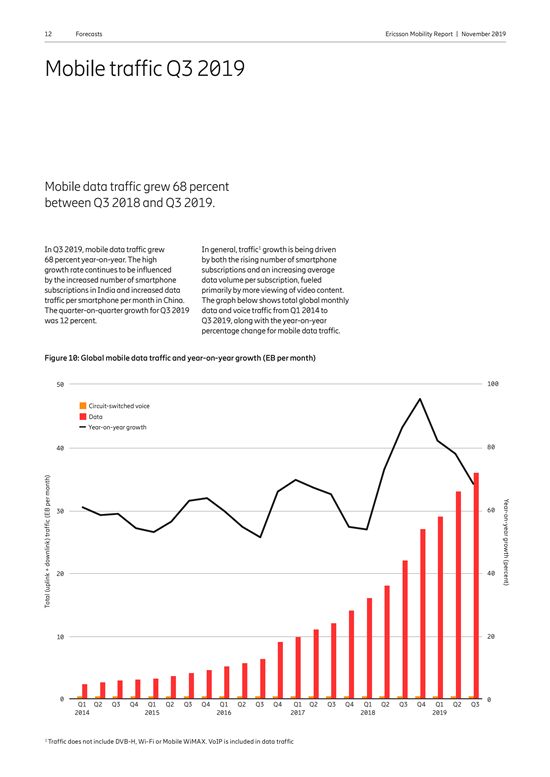统计显示,2019年Q3全球移动数据量同比增长68%,其中一个重要影响因素是中国智能手机用户剧增。
