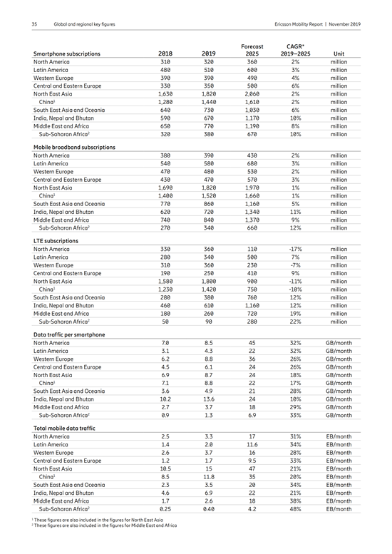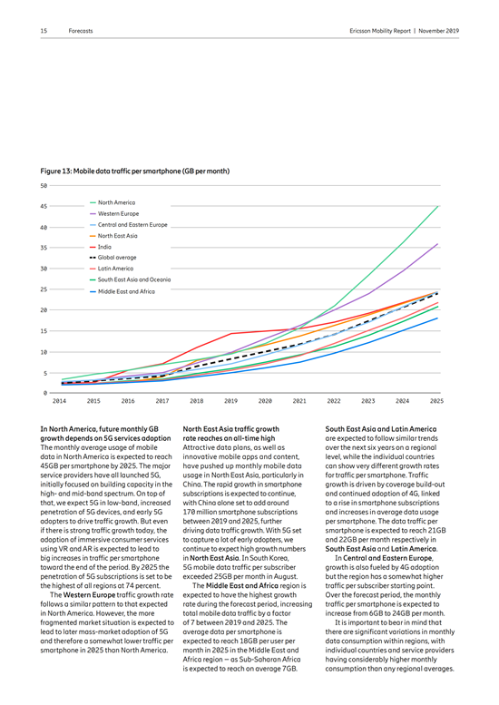 图为:爱立信报告中展示的2019 vs.2025年移动端app数据消耗量对比
