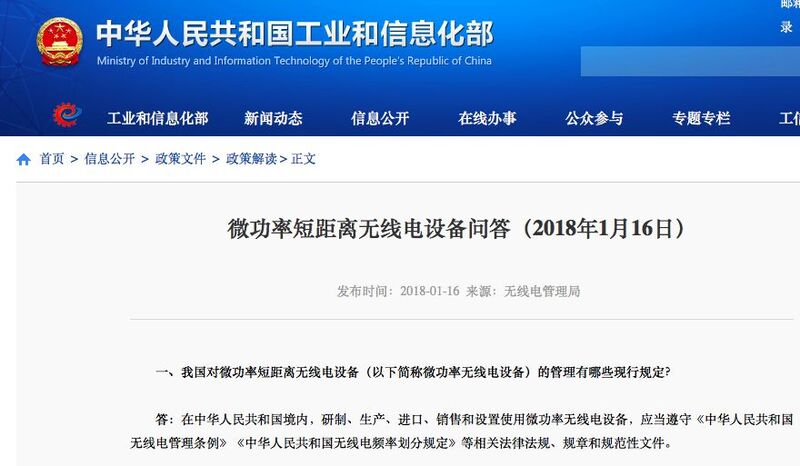 附:微功率短距离无线电设备问答(2018年1月16日)