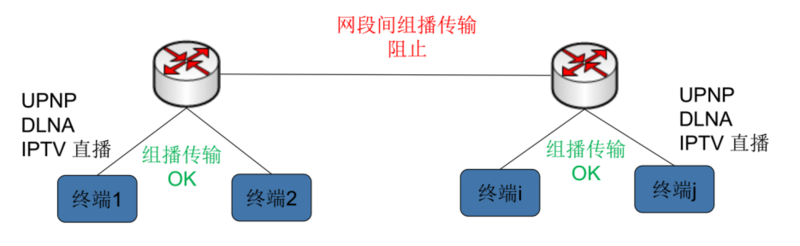 UDP组播是由路由器维护组播组信息。为了跨网段传输组播,传统的方案需要路由器和交换机允许组播协议通过,路由器将申请加入的操作向上级路由提交。广域网通信要经过多级路由器和交换机,考虑到D类地址冲突以及UPNP等应用需要限定范围,几乎所有的网络设备都默认阻止组播协议通过(只允许本网段内,不向上级提交),这使得广域网上传输组播有很多局限。而一般面向互联网的家庭光猫也并不支持组播网段间传递,造成了IPTV所需要的UDP组播无法导到终端。