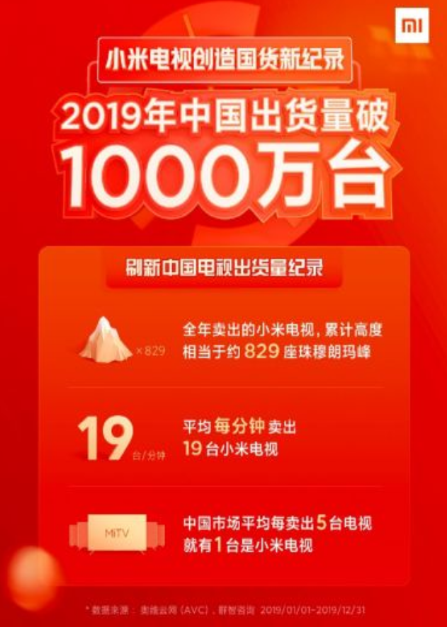 李肖爽称,2019年小米电视中国市场出货量破1000万台,成为电视史上中国首个年出货量破1000万台的品牌,也是目前"千万俱乐部"的唯一成员,创造了中国电视工业的新纪录!