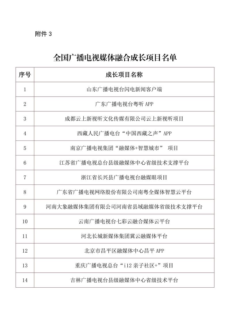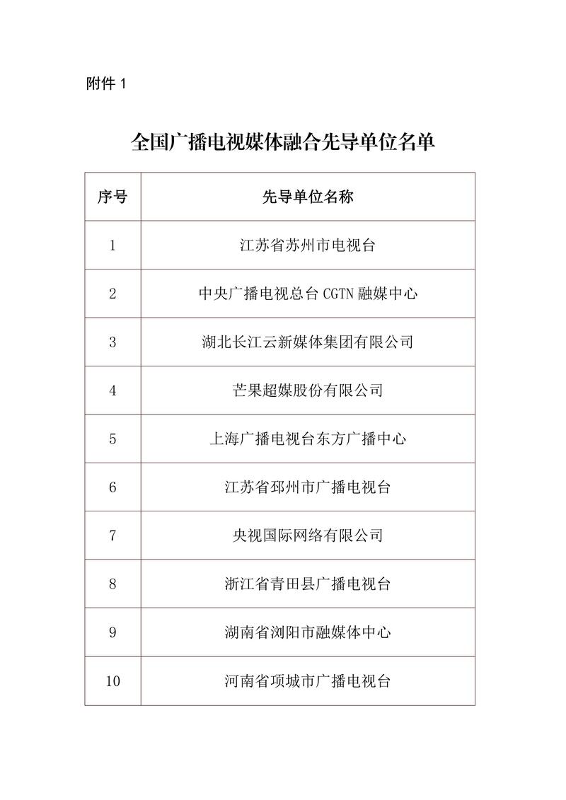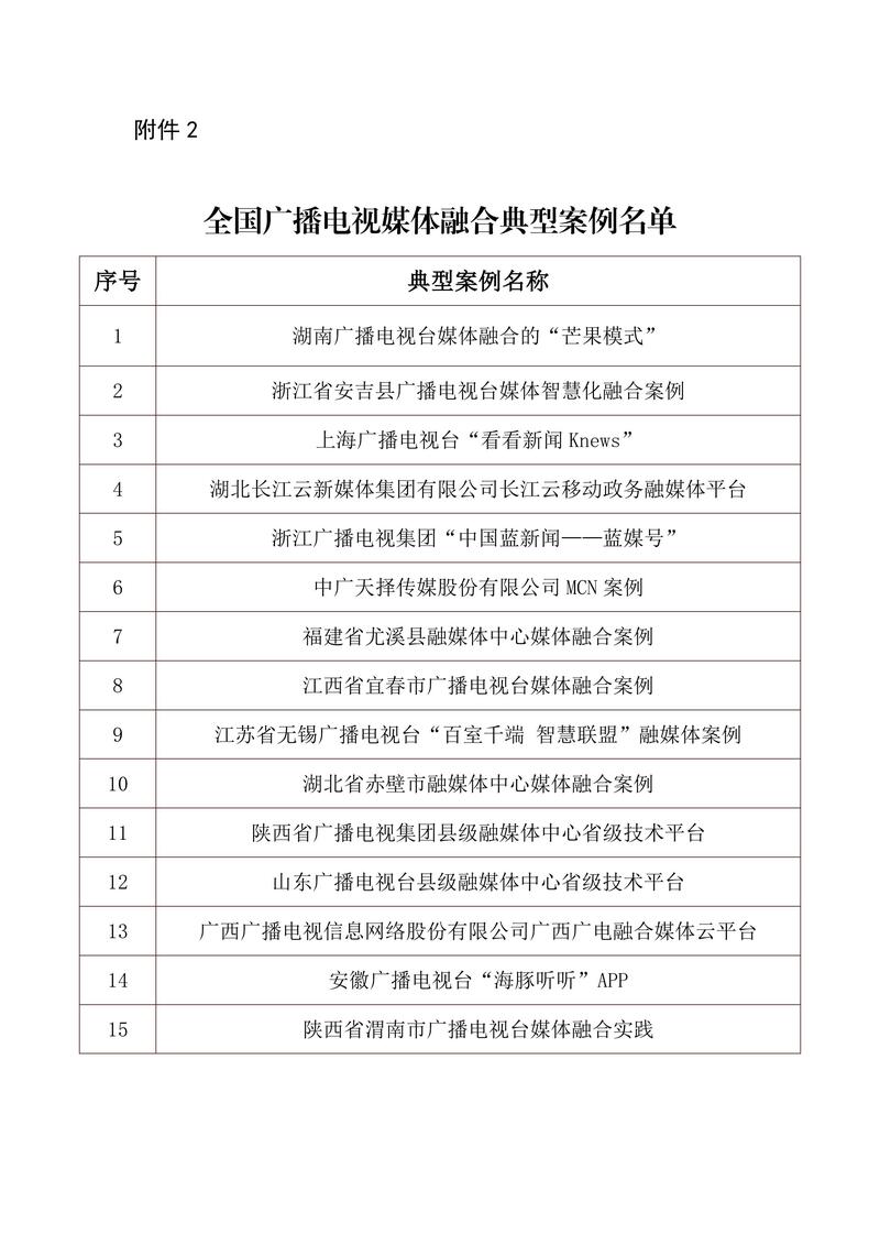 为深入贯彻落实习近平总书记关于推动媒体融合发展的重要论述精神,加快推进广播电视媒体与新兴媒体深度融合发展,充分发挥先进典型的示范作用和重点项目的带动作用,2019年5月,广电总局在全国开展了广播电视媒体融合先导单位、典型案例、成长项目征集评选活动,得到各地各单位积极响应。为公开、公平、公正地做好评选工作,广电总局组织专家学者,对各地选送的推荐材料进行认真评审,经过初评、复评、终评,共评出全国广播电视媒体融合先导单位10家、全国广播电视媒体融合典型案例15个、全国广播电视媒体融合成长项目14个,现予以公示。