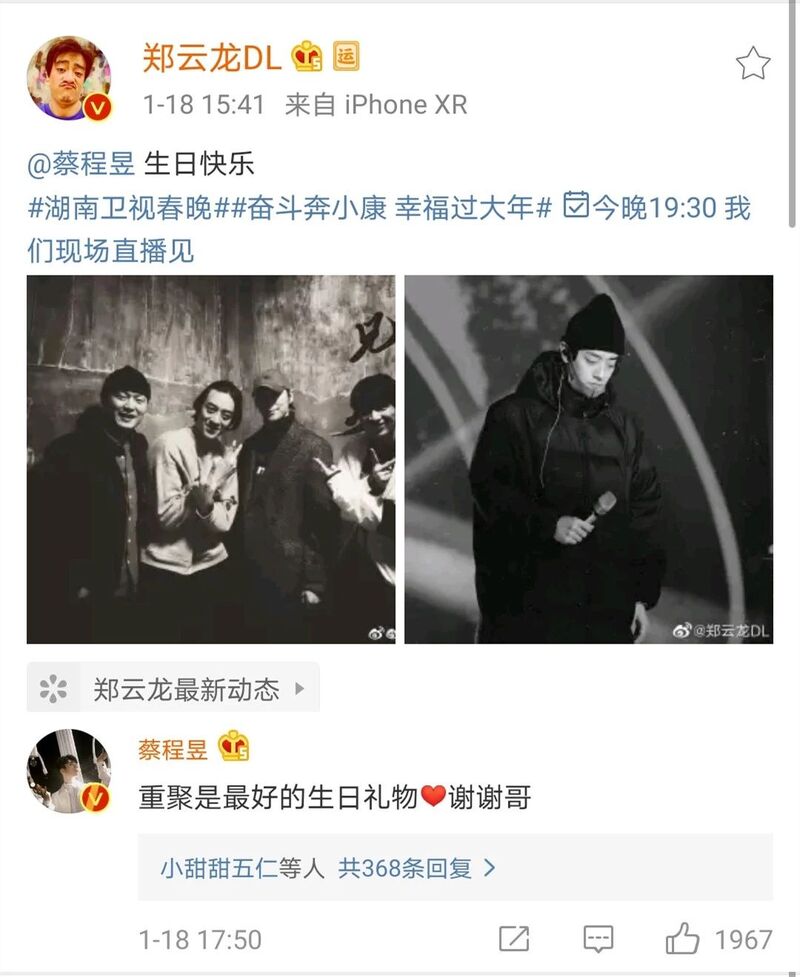 台前他们认真歌唱,台后搅和的盛会也是一场接一场。晚会排练再忙碌,大龙也不忘在微博为蔡蔡低调送上生日祝福。这一切本喵可都看在眼里呢,梅溪湖szd!阿龙川蔡szd!