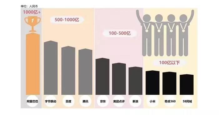 《报告》显示,2019中国互联网广告收入4367亿:TOP10由高到低分别为阿里巴巴、字节跳动、百度、腾讯、京东、美团点评、新浪、小米、奇虎360和58同城。