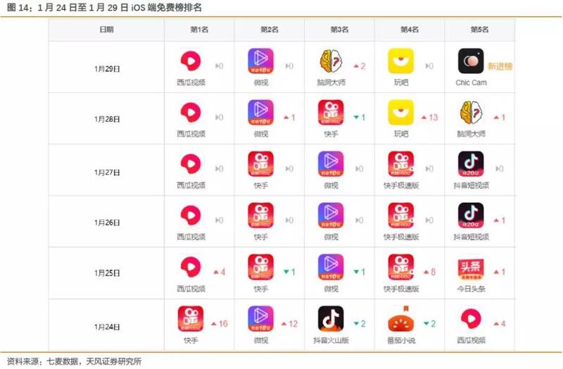 但1月24日字节跳动与欢喜传媒宣布合作后,西瓜视频在iOS免费榜迅速超过快手排名第一,并且自1月25日至今(1月29日)西瓜视频持续位列免费榜第一,快手仅居第二(1月28日后快手排名进一步下滑)。可见,字节跳动通过与欢喜传媒的合作实现了又快又准的反击。