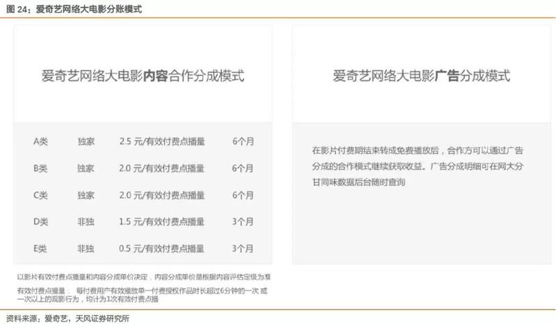 国内虽然没有高度集中的产业链环节,但一方面,影院观影效果线上难以取代,尤其是特效电影。另一方面,对头部影片而言,窗口期发行更符合片方利益,2019年影院平均票价(ARPU)35元/人,粗略计算片方分得约13元/人,而根据爱奇艺网络大电影分成模式,A类独家合作作品分成为2.5元/有效付费点播点播量,差距较大。可见,头部作品先上院线后上视频网站点播更能实现片方利益最大化。