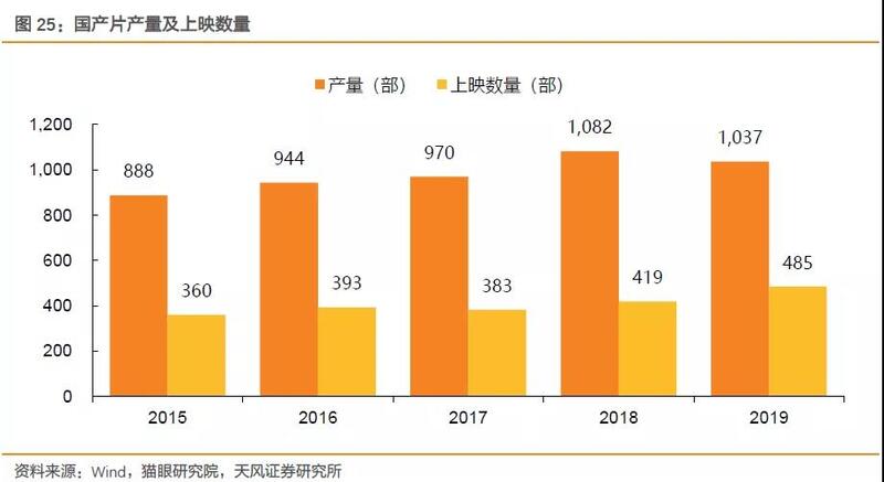 另外,从影片供给情况看,我国近年来电影产量维持在约1000部/年的水平,而能上院线作品数仅一半不到,对非头部或小众内容而言,在院线上映难以获得较高的排片和票房。同时我们也看到,近两年来优质作品往往会通过延长上映时间以获得更高受益,如2017年暑期档《战狼2》、2019年春节档《流浪地球》、2019年暑期档《哪吒》等上映时间均延长2个月。因而线上影院实际为部分差异化竞争,以及中长尾电影作品提供了增量的分发渠道和变现方式,而院线渠道仍是头部内容的首选渠道。
