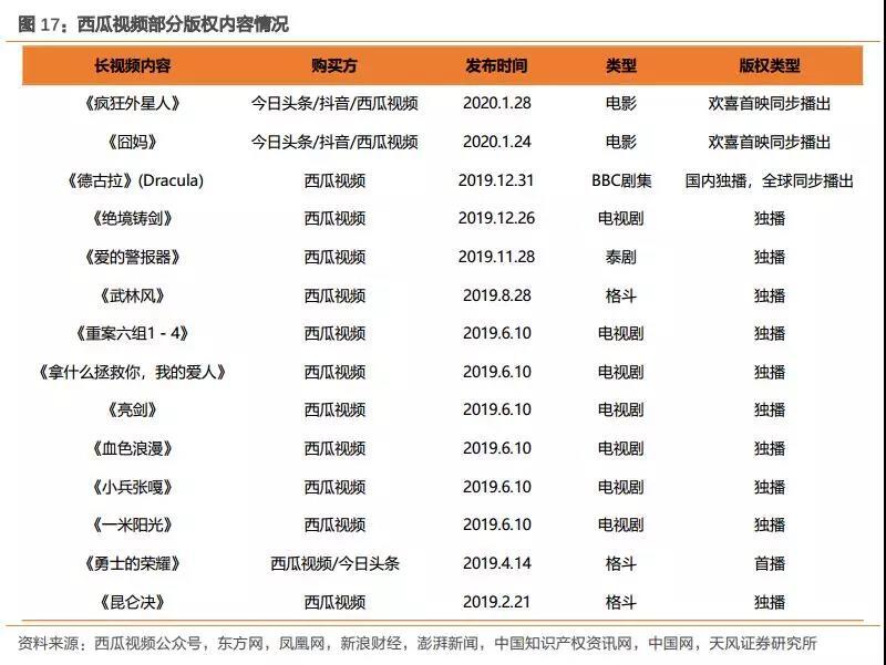 从综艺到全面进入长视频,头条的战略可以理解,但如何平衡长期战略和短期财务支出,也需观察公司的后续执行情况。另外,从字节跳动与欢喜传媒合作协议条款也可以发现,双方约定共建院线频道,共同打造“首映”流媒体平台以及双方共同出资制作购买影视内容的新媒体版权等条款均为第二阶段合作内容,并非当下。