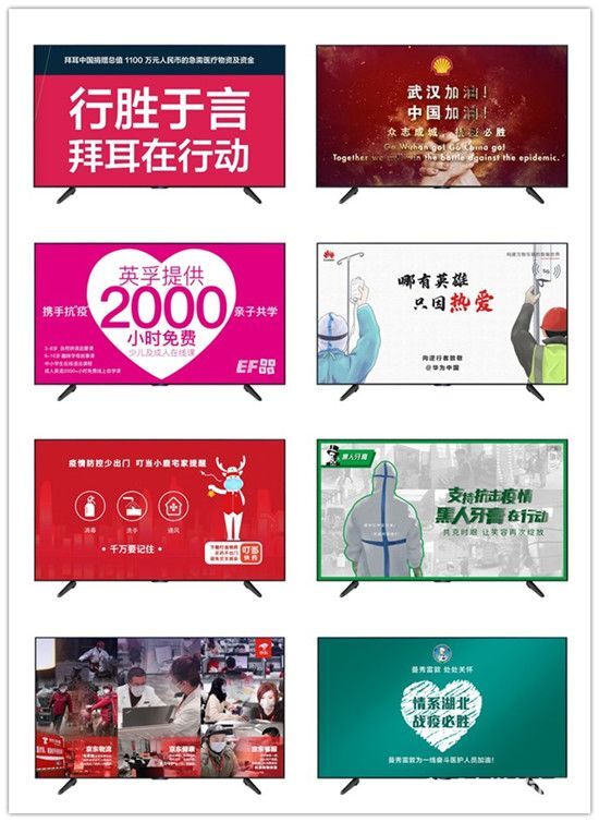 目前各行各业都在积极发挥自身优势及业务资源,以实际行动参与到抗疫中,陆续开展公益捐赠等活动为抗击疫情贡献力量,共克时艰。与此同时,受疫情影响,电视大屏的关注度与活跃度都在提升,成为抗疫中的关键一环,而大屏作为媒体平台、广告机构,更应该为这些爱心企业点赞。