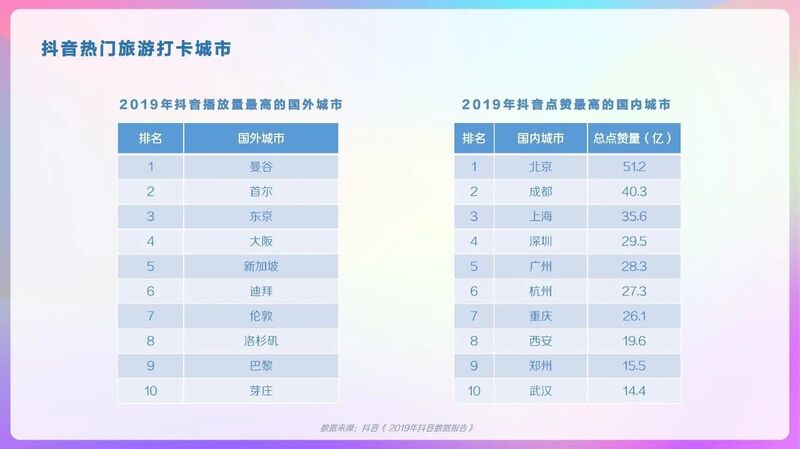 抖音用户偏好视频类型,演绎、生活、美食类视频播放量较高,观看情感、文化、影视类视频增长较快。男性用户对军事、游戏、汽车偏好度较高,女性用户对美妆、母婴、穿搭偏好度高。00后对游戏、电子产品、时尚穿搭类视频偏好度高。95后对游戏、电子产品、穿搭类视频偏好度高。90后对影视、母婴、美食类视频偏好度高。80后对汽车、母婴、美食类视频偏好度高。