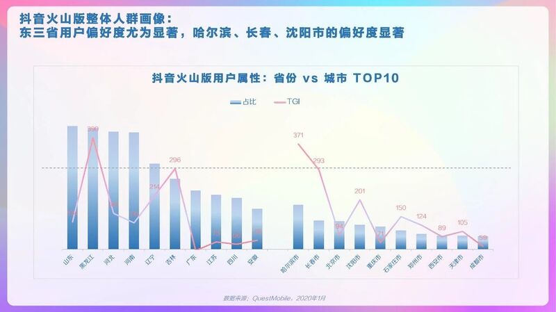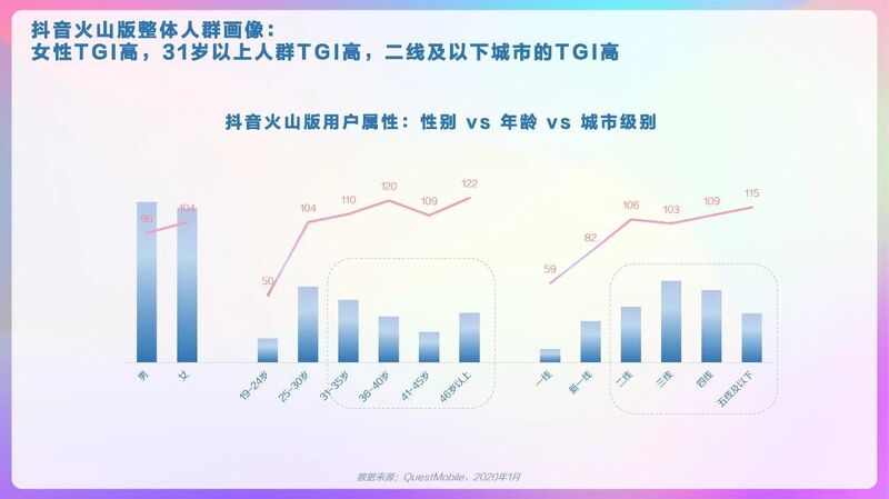 【流媒体网】摘要:抖音整体人群画像,男女较均衡,19-30岁TGI高,新一线、三线及以下城市用户TGI高。