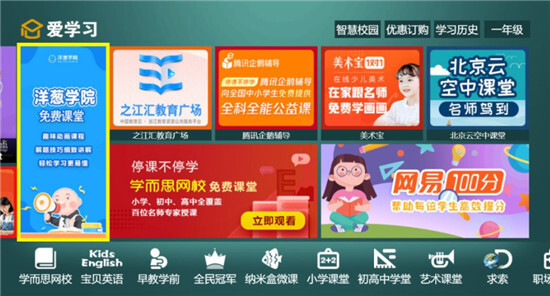 华数爱学习栏目不仅包含杭州“共享课堂”的内容,还整合了学而思网校免费课堂、之江汇教育广场、有道精品课、企鹅辅导、洋葱学院、美术宝等品牌的海量优质课程。目前爱学习栏目共有超过3万集的教育视频节目,总时长超过6000小时,覆盖幼儿园、中小学及成人在内的全年龄段收视群体,开学前所有品牌专区、同步优课、德育教育、兴趣拓展课程等在内的全学科内容全部免费供所有学生点播、学习。孩子们可以在健康安心的环境里学习,保障学习进度不受疫情影响。