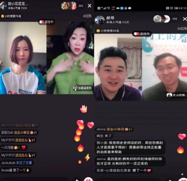 15名来自中科院心理所和心理机构的专家,和方舱“战地记者”阿布、用直播传递正能量的电台主播郝哥、曾驰援武汉如今留守海外的华人田小花等小红书用户一起,结合用户个人经历分析,为更多处境相似的网友提供可参考的心理疏导方法,近5万网友观看了直播。