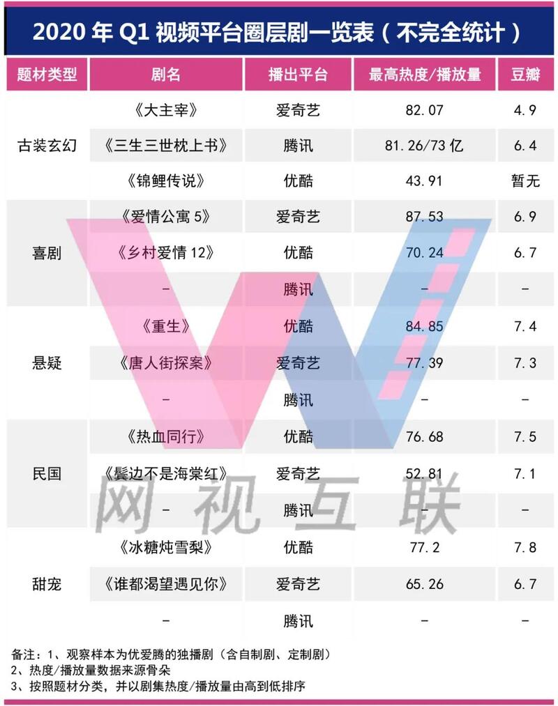 这意味着,视频平台的剧集布局策略会根据自己的调性而有所差异。回看Q1优爱腾播出的圈层剧,表现如何呢?今年各家储备的弹药又是否充足?