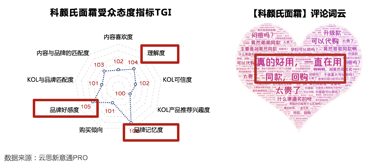 从用户态度来看,【科颜氏面霜】创意的【品牌记忆度】【品牌好感度】【创意理解度】表现优于同类创意,此次创意内容信息传递明确,成功提升品牌形象。从评论来看,此创意触达的用户以忠诚用户为主,目标人群精准。