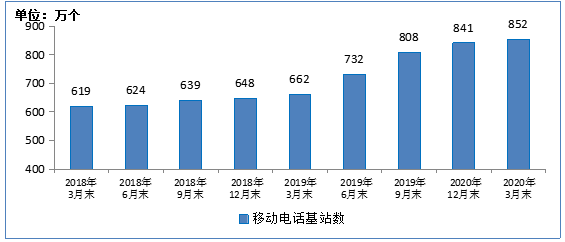 ——移动电话基站数持续较快增长。截至3月末,移动电话基站总数达852.3万个,同比增长28.8%。其中,4G基站总数为551万个,占比为64.7%。