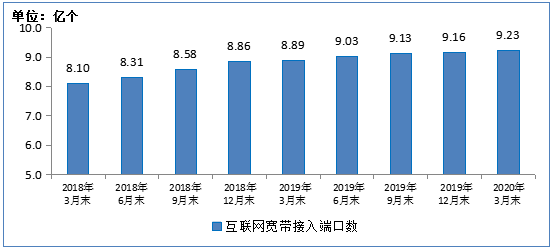 2018-2020年3月末互联网宽带接入端口数发展情况