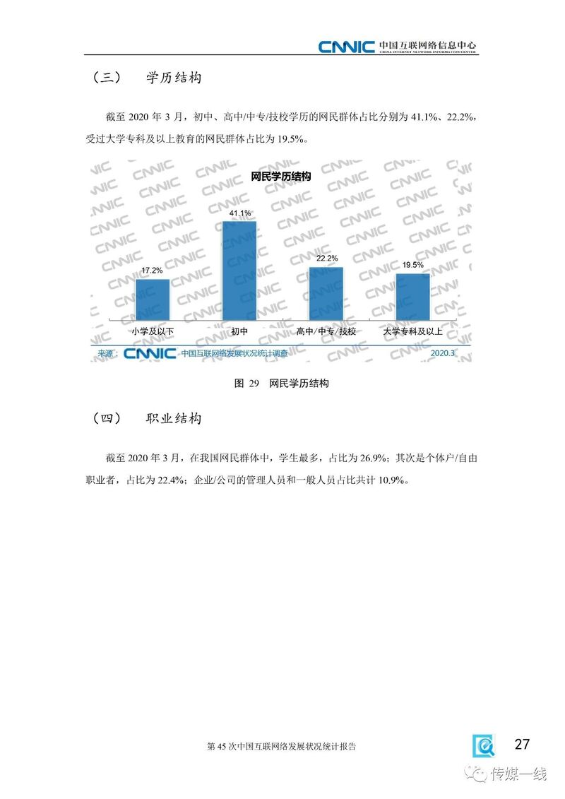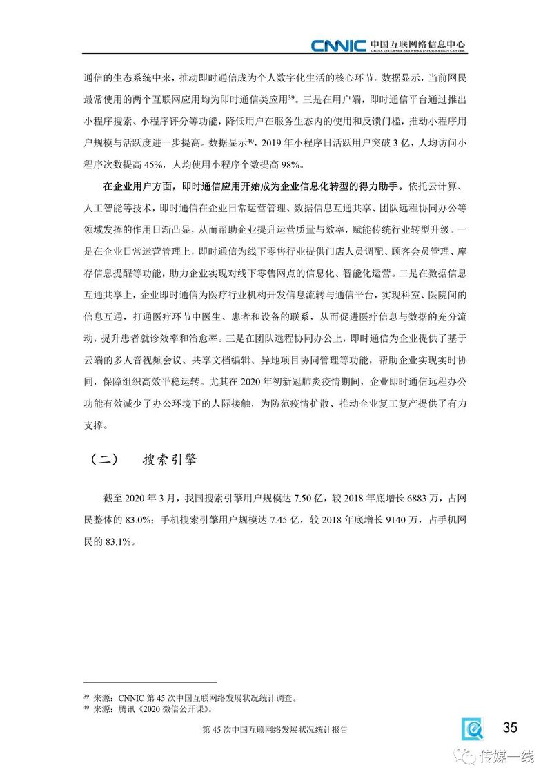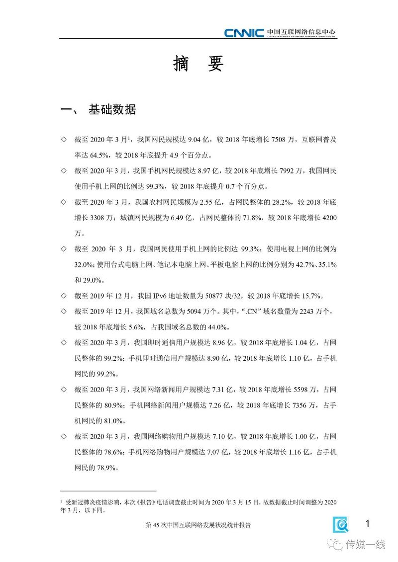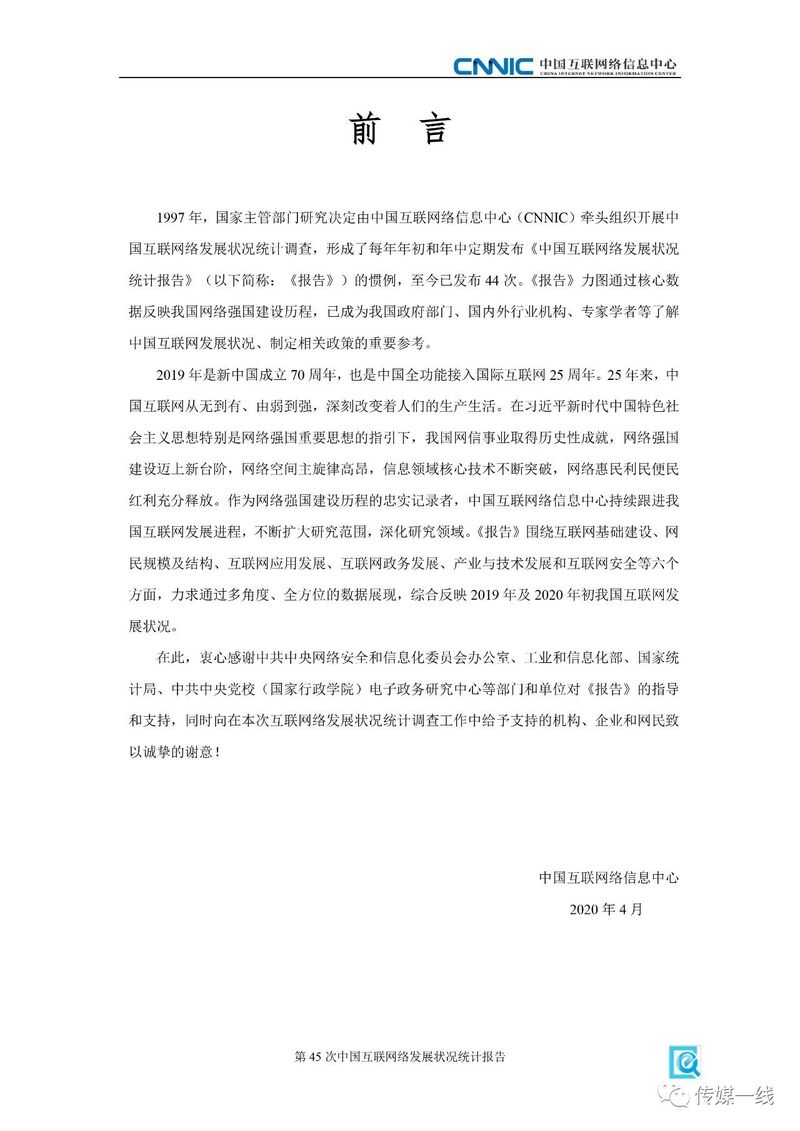 第45次中国互联网络发展状况统计报告(2020年4月)