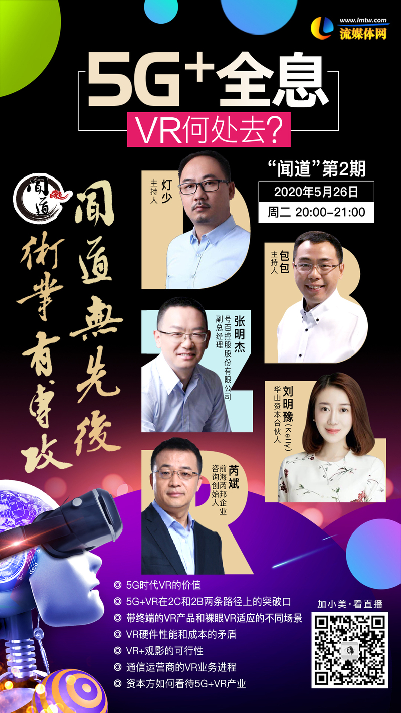 5月26日,[闻道]第2期,将围绕5G+VR展开深入探讨。届时将有实战经验分享——躺过的坑和该避的雷,以及摸索出的切实可行的路径等等,想要获悉这些宝贵信息,5月26日,我们[闻道]见!
