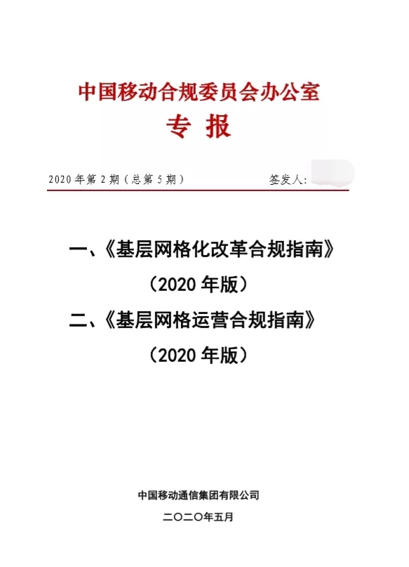 中国移动发布《基层网格化改革合规指南》、《基层网格运营合规指南》