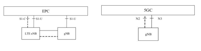 图1 R15 NR NSA和R15 NR SA技术架构示意图