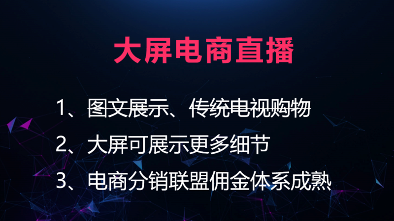 其实电视购物一直都存在,包括图文展示和传统电视购物,但都没有现在电商主播的体验好,大屏能够比移动端展示更多细节,电商分销联盟的佣金体系也已经相当成熟,甚至可以实现为每个家庭展示个性化的快消品销售。
