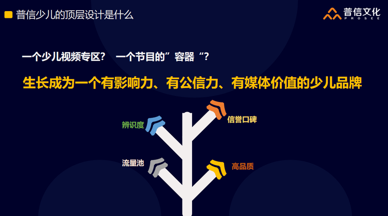 普信少儿目前已经承包了六个省份的运营专区,在运营过程当中,我们也不断去实践上述的想法。在运营过程中,我们做了一些总结:首先,要打造一个有影响力的少儿品牌,你得是一个懂内容的公司;第二,要把平台打造成一个动画首发平台;最后,我们在用户的运营层面做了很多情感陪护、家长关怀、区隔化服务等工作,也发挥了普信少儿自身的优势。在这个过程当中,普信少儿成为了内容的信息高速公路,提供持续的内容价值变现。