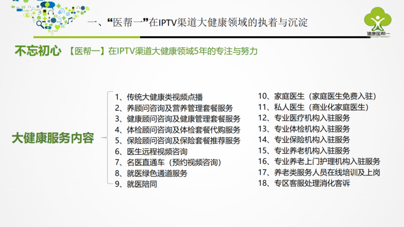 【流媒体网】消息:医帮一在IPTV渠道大健康领域的执着与沉淀。