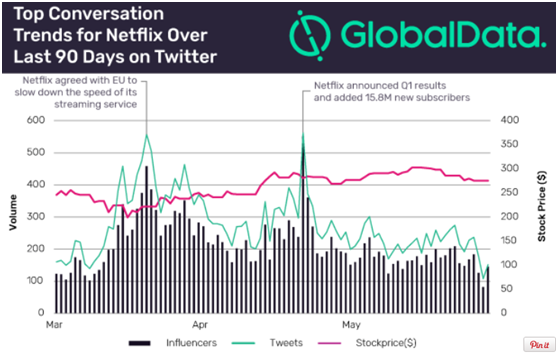 【流媒体网】消息:在过去三个月的全球封锁中,Netflix获得了巨大的提升。根据GlobalData 的研究显示,领先的订阅视频点播服务在很大程度上受到了社交媒体渠道的推动。