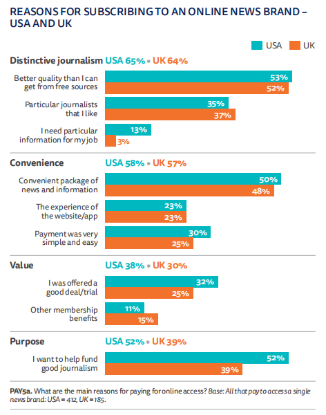 注:美国和英国用户付费新闻的主要原因(来源:路透新闻研究所)