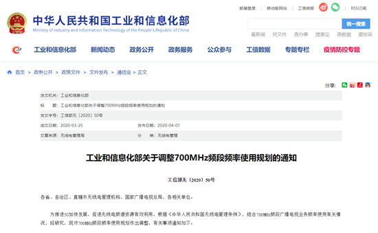 另一方面,在纠葛的部门利益面前,700MHz的归属和利用问题始终悬而未决,而2020年这一问题迎来转机。4月,工信部将700MHz频段重新划归给移动通信系统,5月中旬消息,工信部批准中国广电使用700MHz频段的许可,准许其使用703-733/758-788MHz频段分批、分步在全国范围内部署5G网络。700MHz频率的规划在多年之后终于尘埃落定。与此同时,广电行业还积极参与到国际标准的制定工作,3月19日,3GPP第87次接入网全会闭幕,中国广电700MHz频段2×30/40MHz技术提案获采纳列入5G国际标准,成为全球首个5G低频段(Sub-1GHz)大带宽5G国际标准。